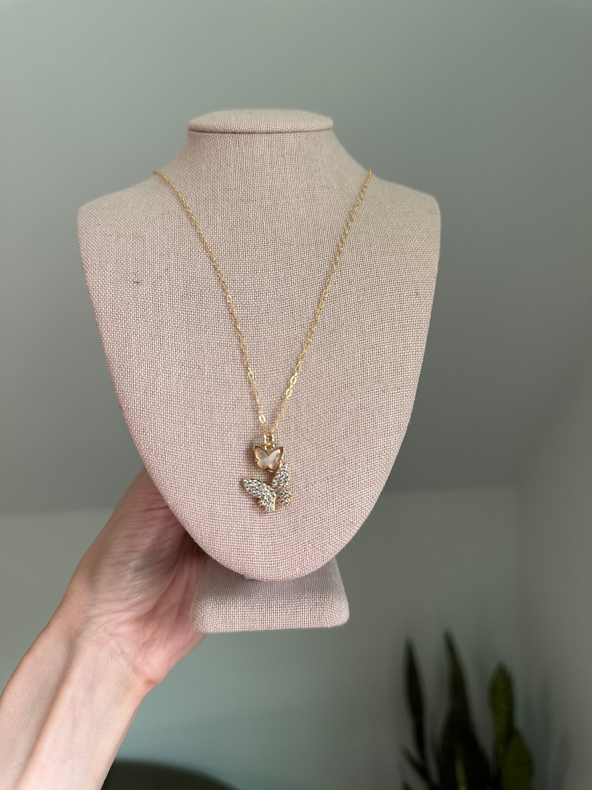 This gold-filled necklace features a delicate gold butterfly charm in honor of Atileana (“TT”), a devoted mother navigating her journey with ALS.