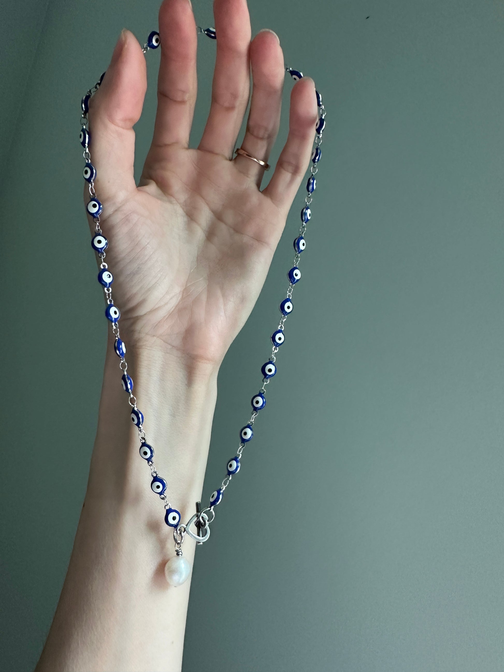 Evil Eye Necklace with Pearl Pendant