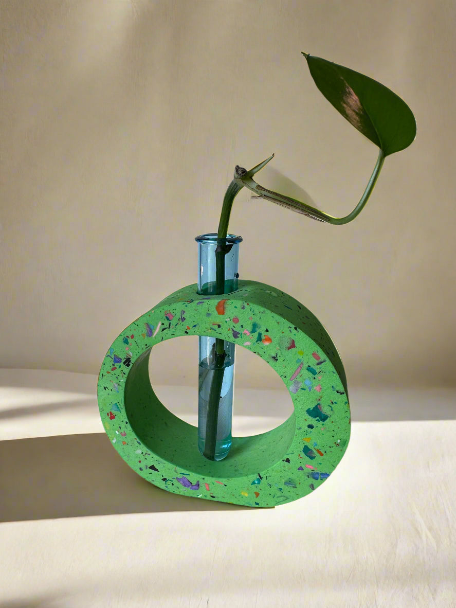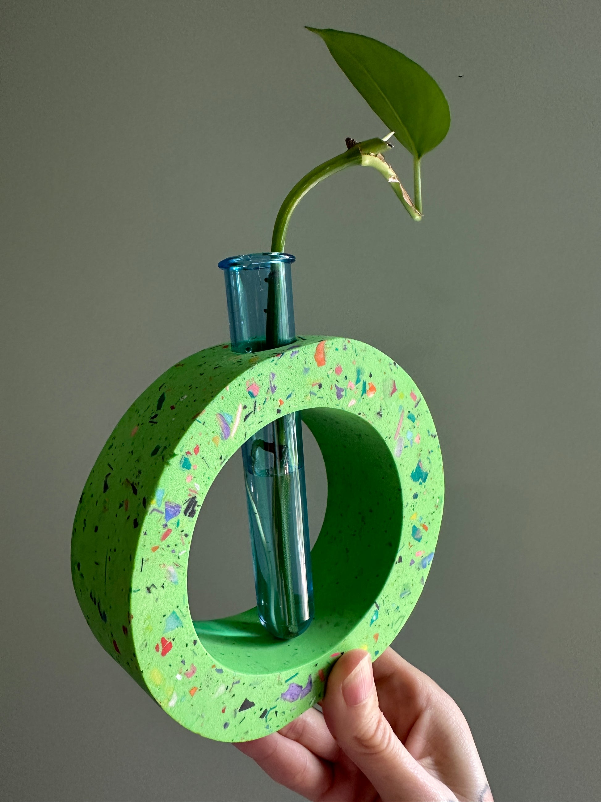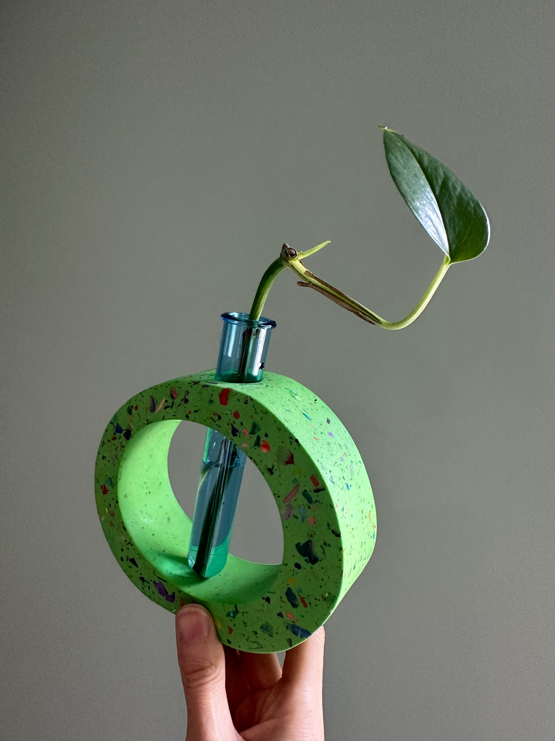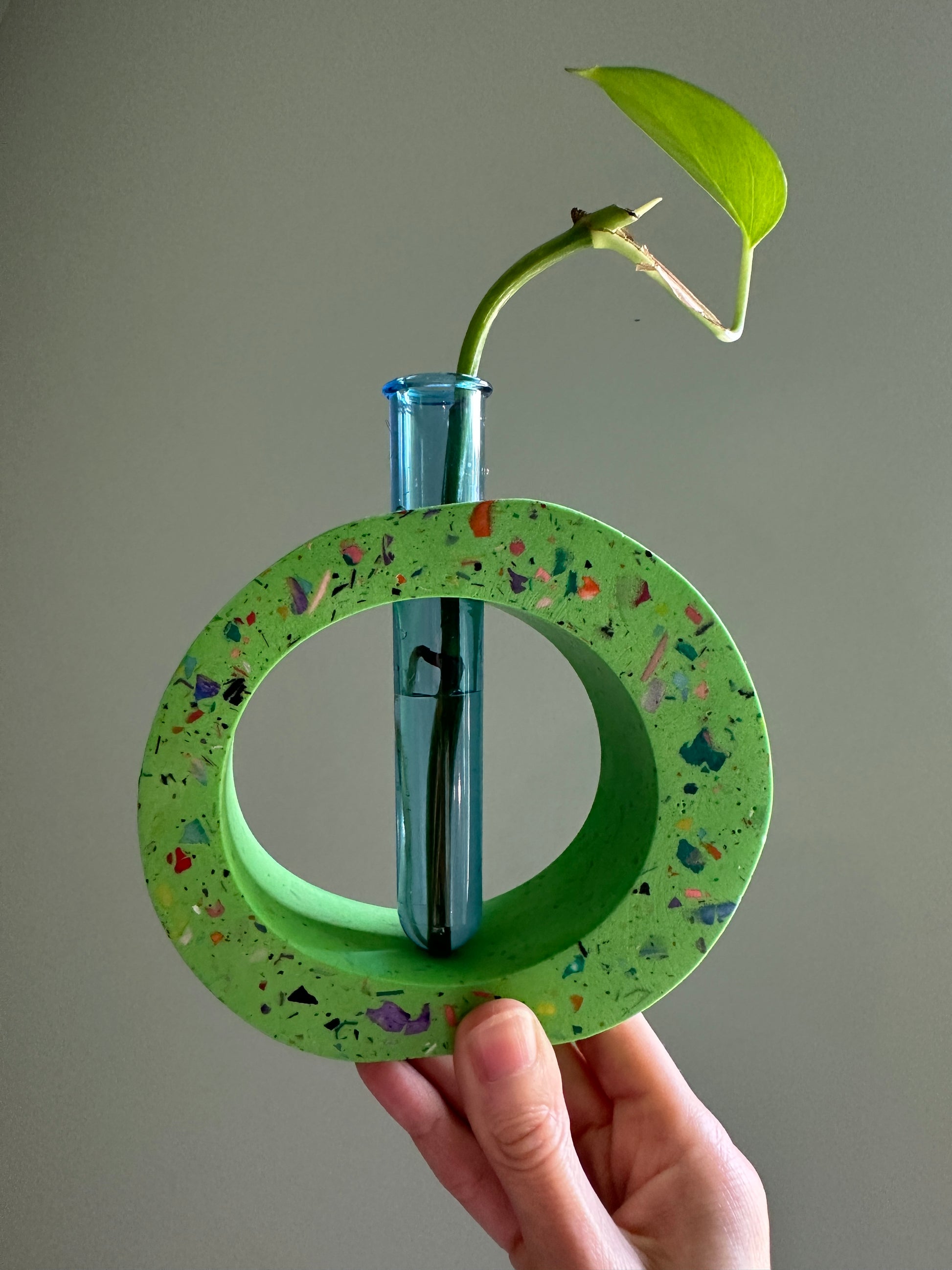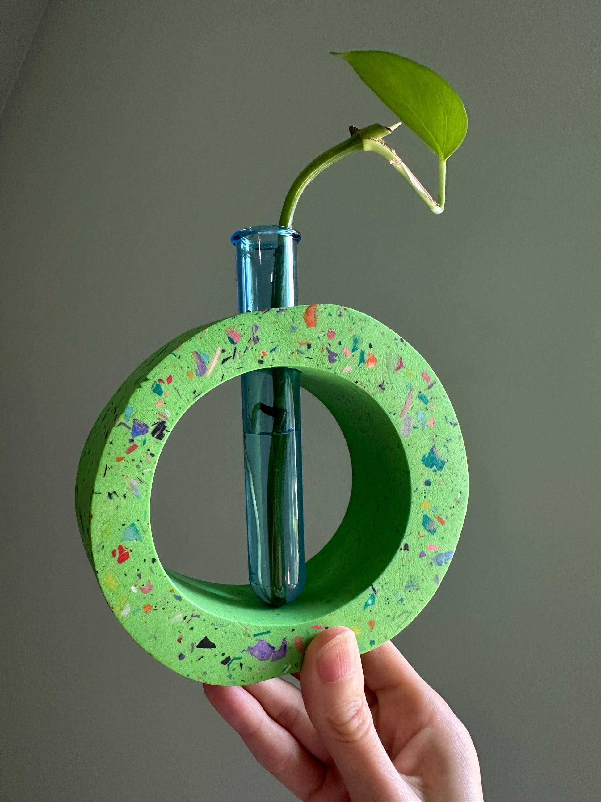 This item is truly a no-waste piece as it was created with scrap chips from various projects to create this fun multicolored propagation holder.