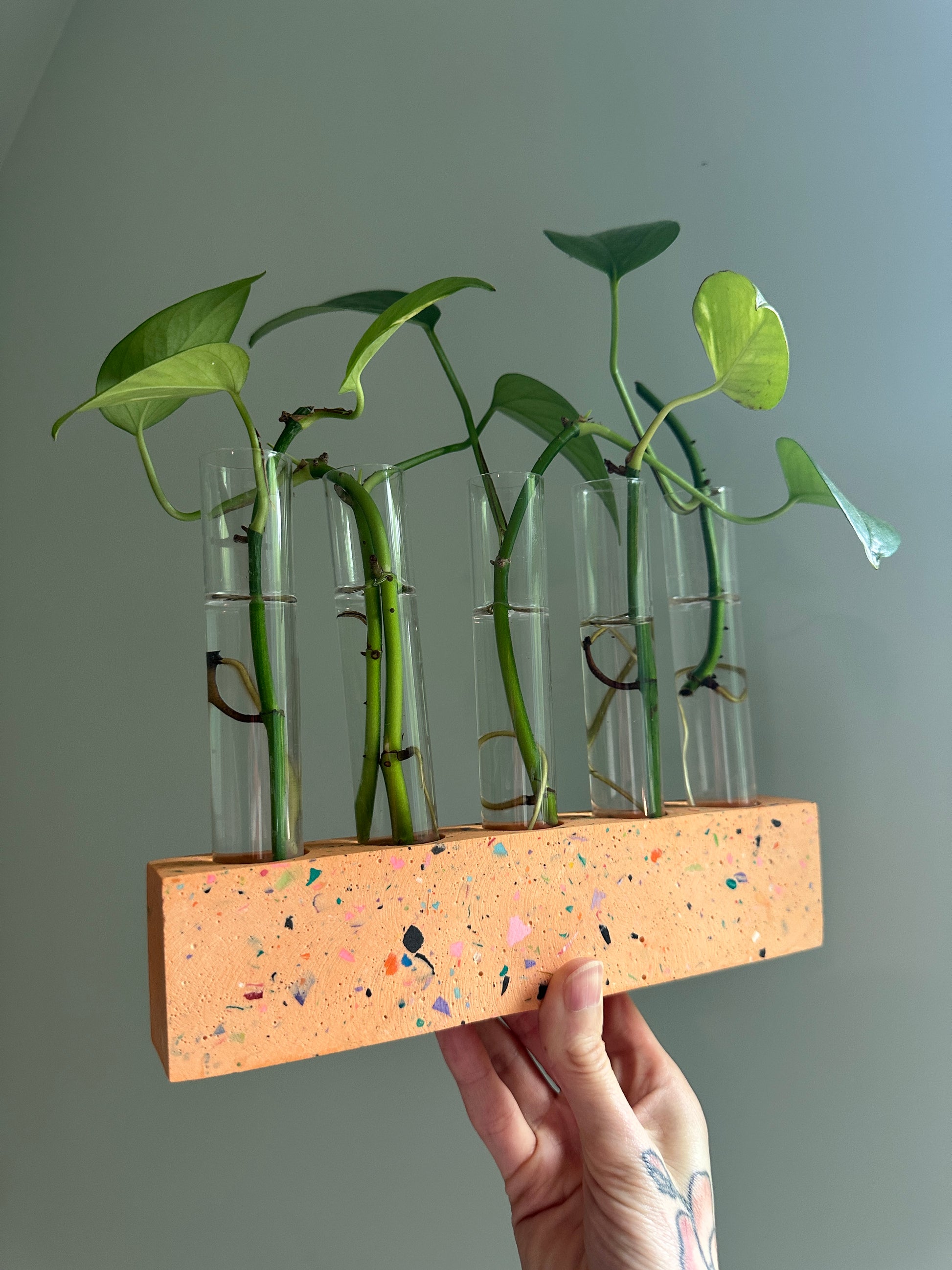 Orange Base Terrazzo Propagation Holder with five flutes. Pothos cuttings not included!