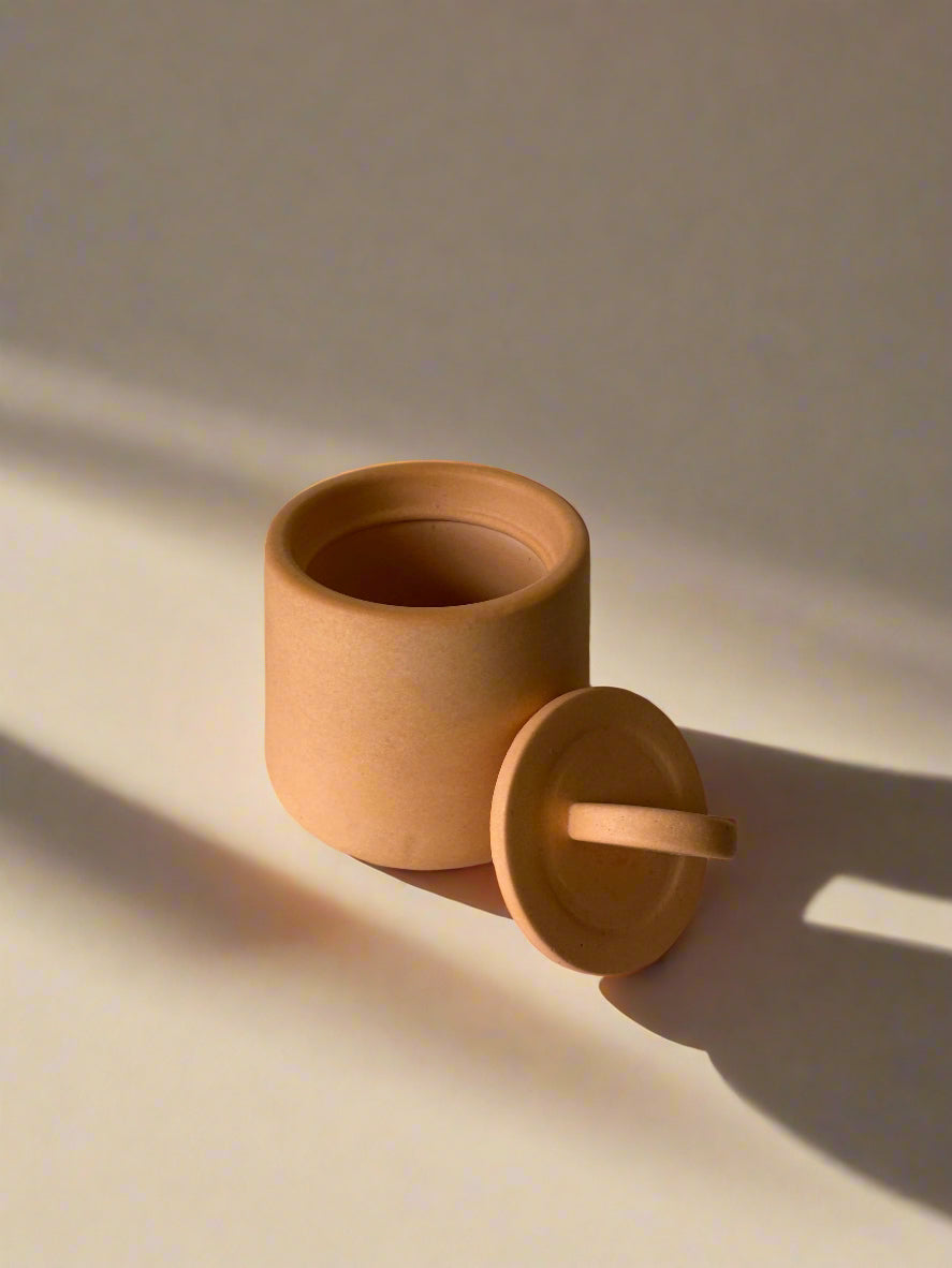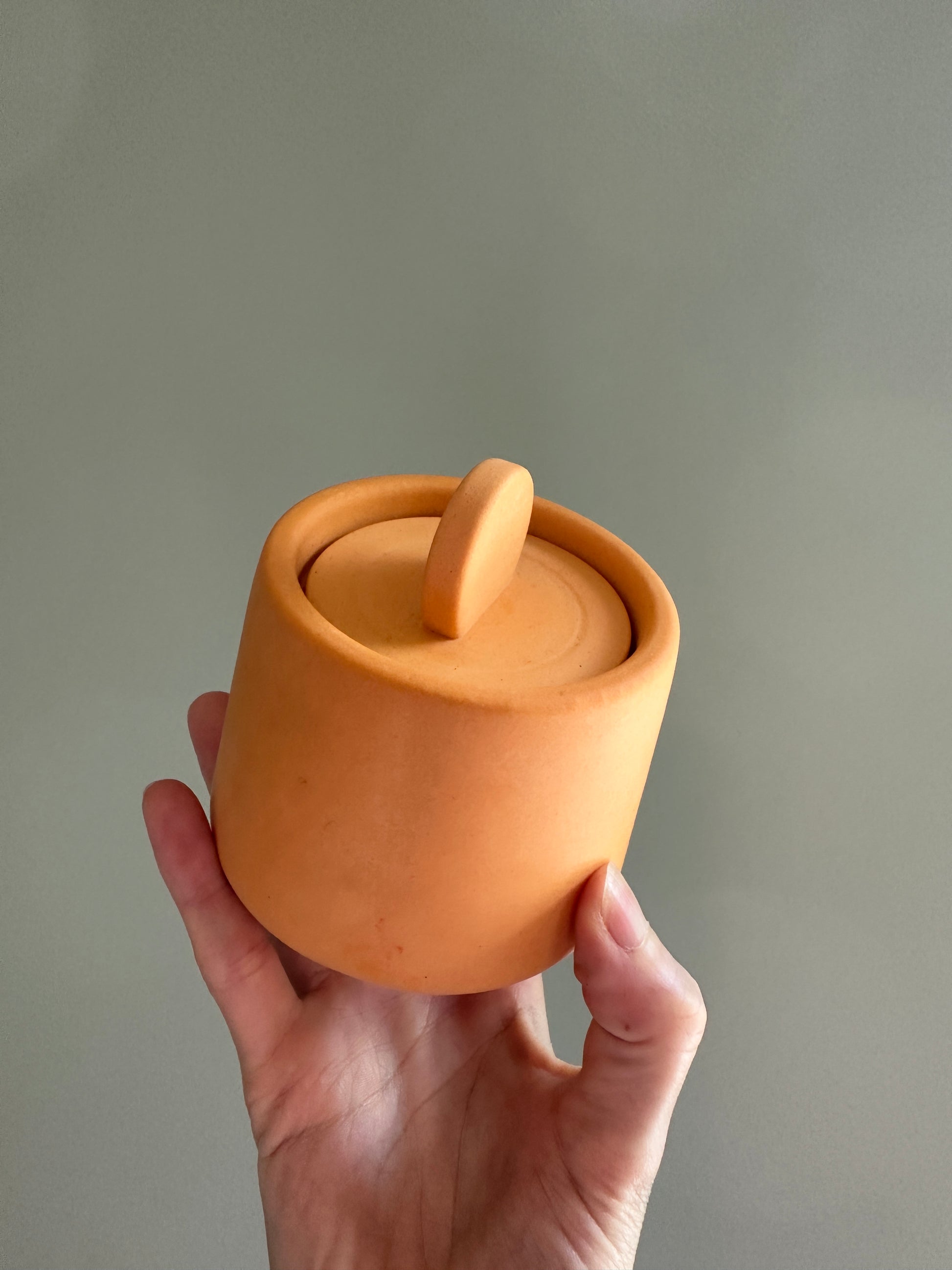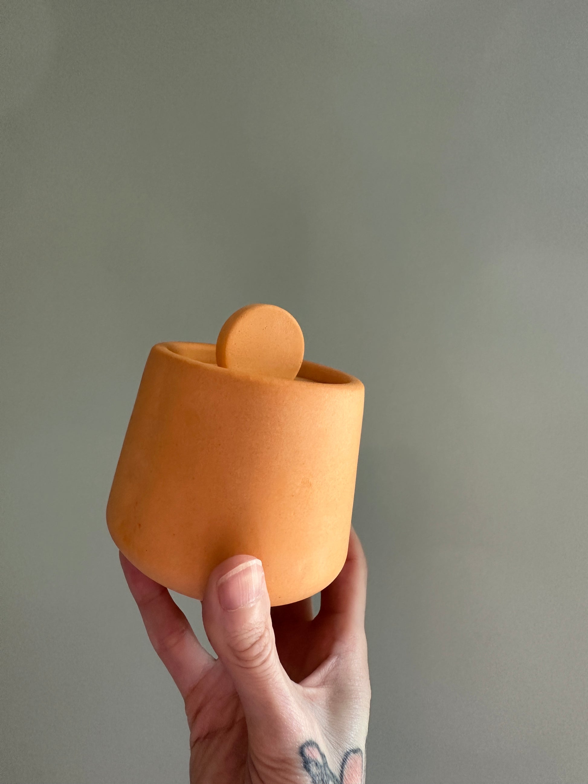 Pale Orange Eco-Friendly Geometric Decorative Jar made with a non-toxic casting compound. Perfect for all your little desk or dresser trinkets!