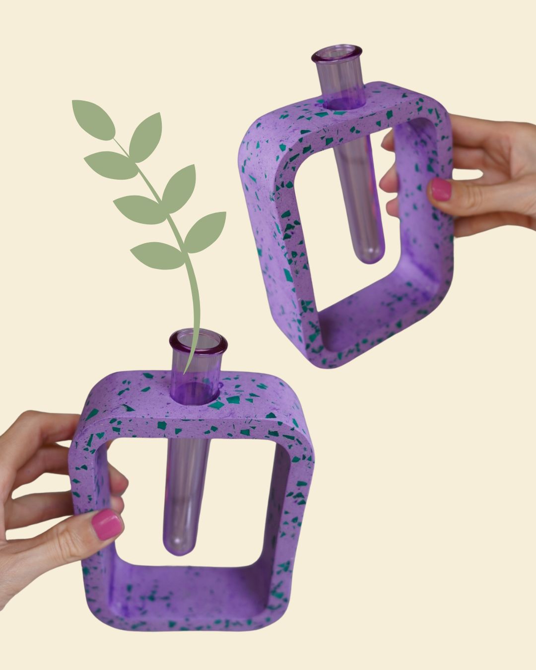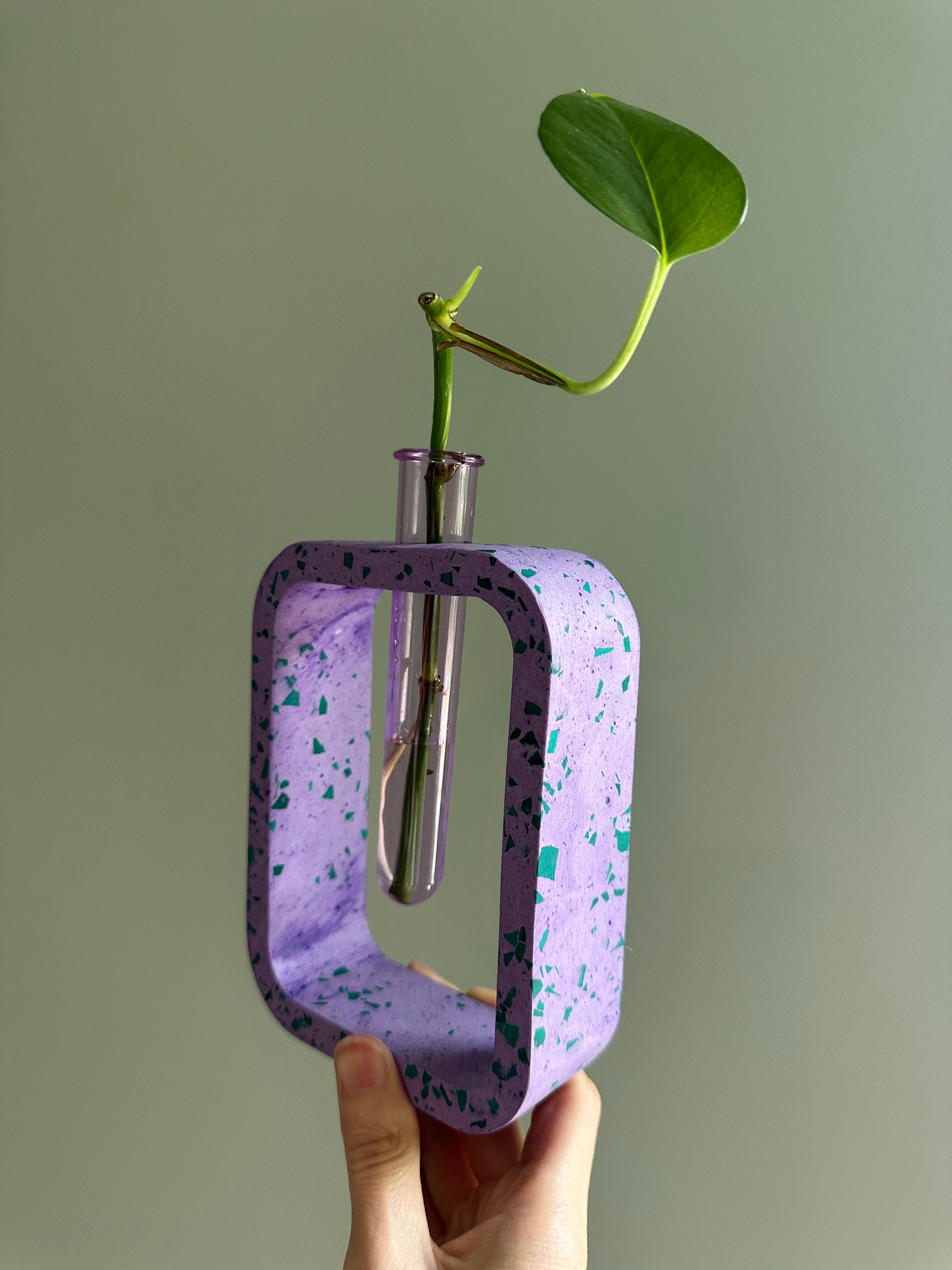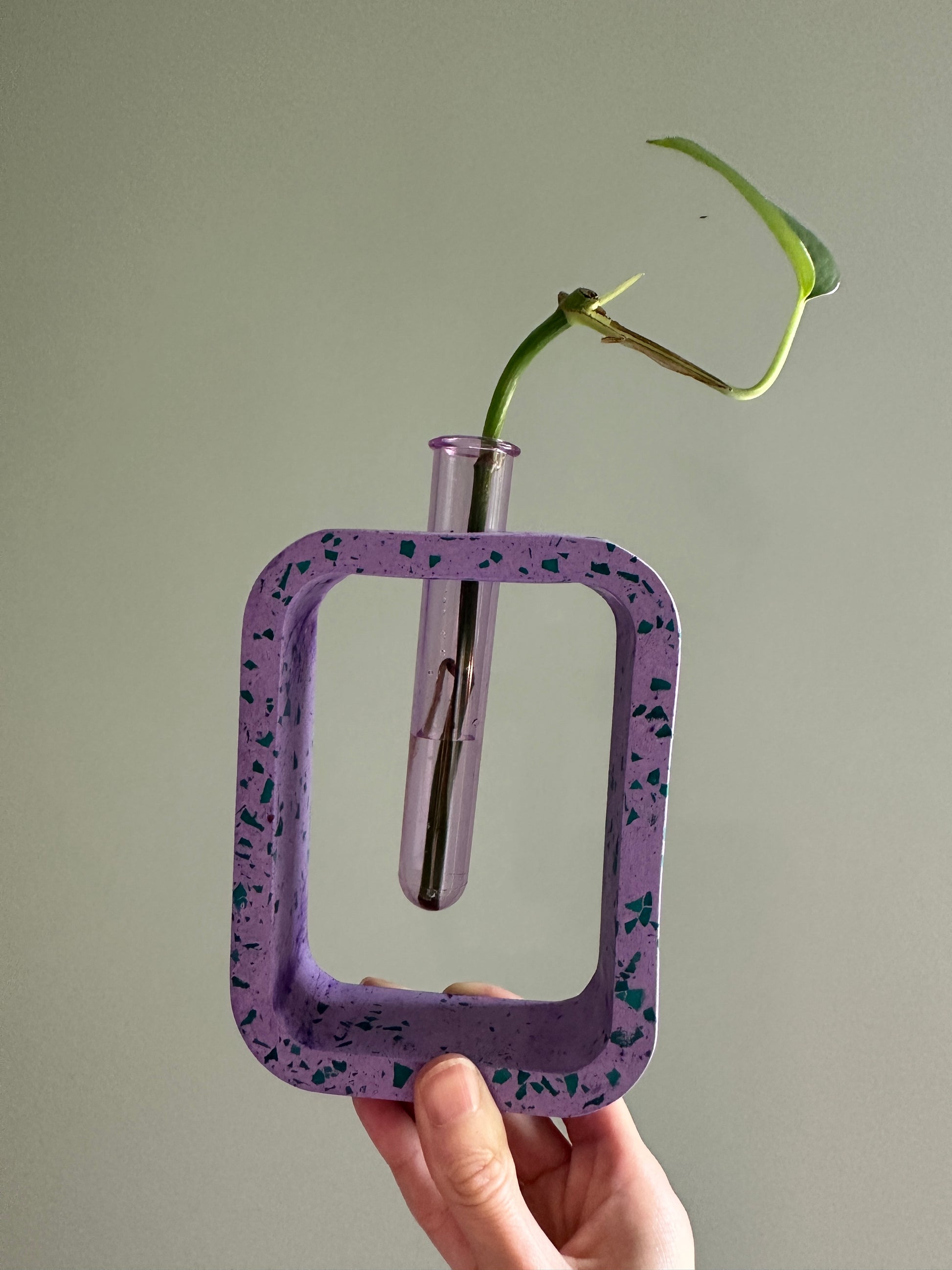 Deep turquoise/green and purple terrazzo propagation holder, comes with purple vile for your cuttings!