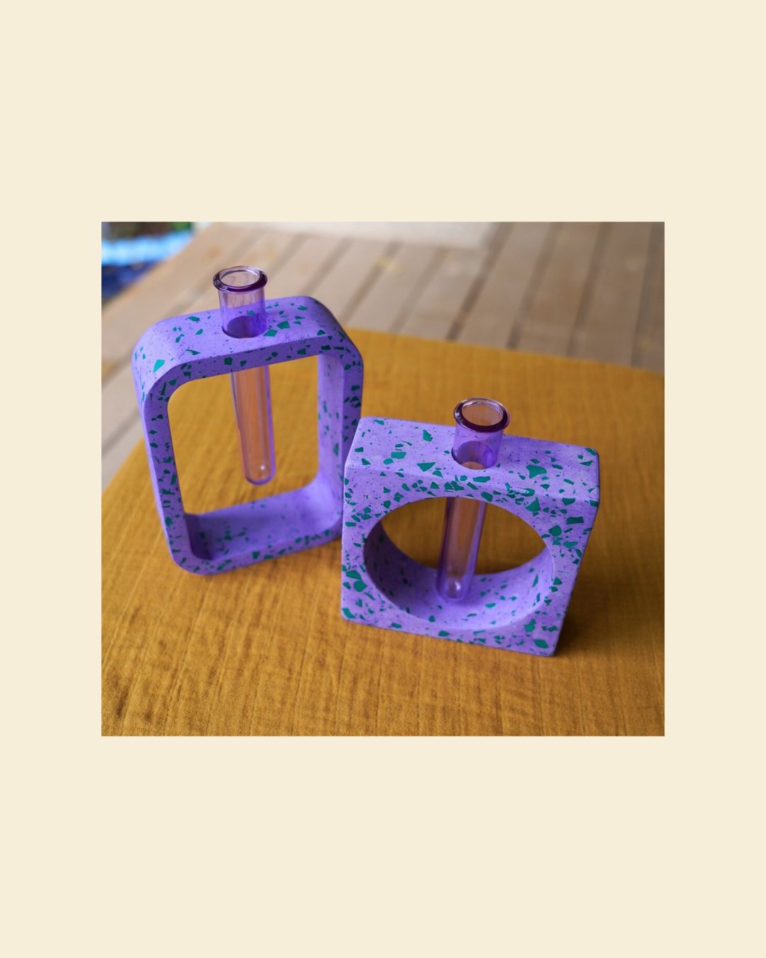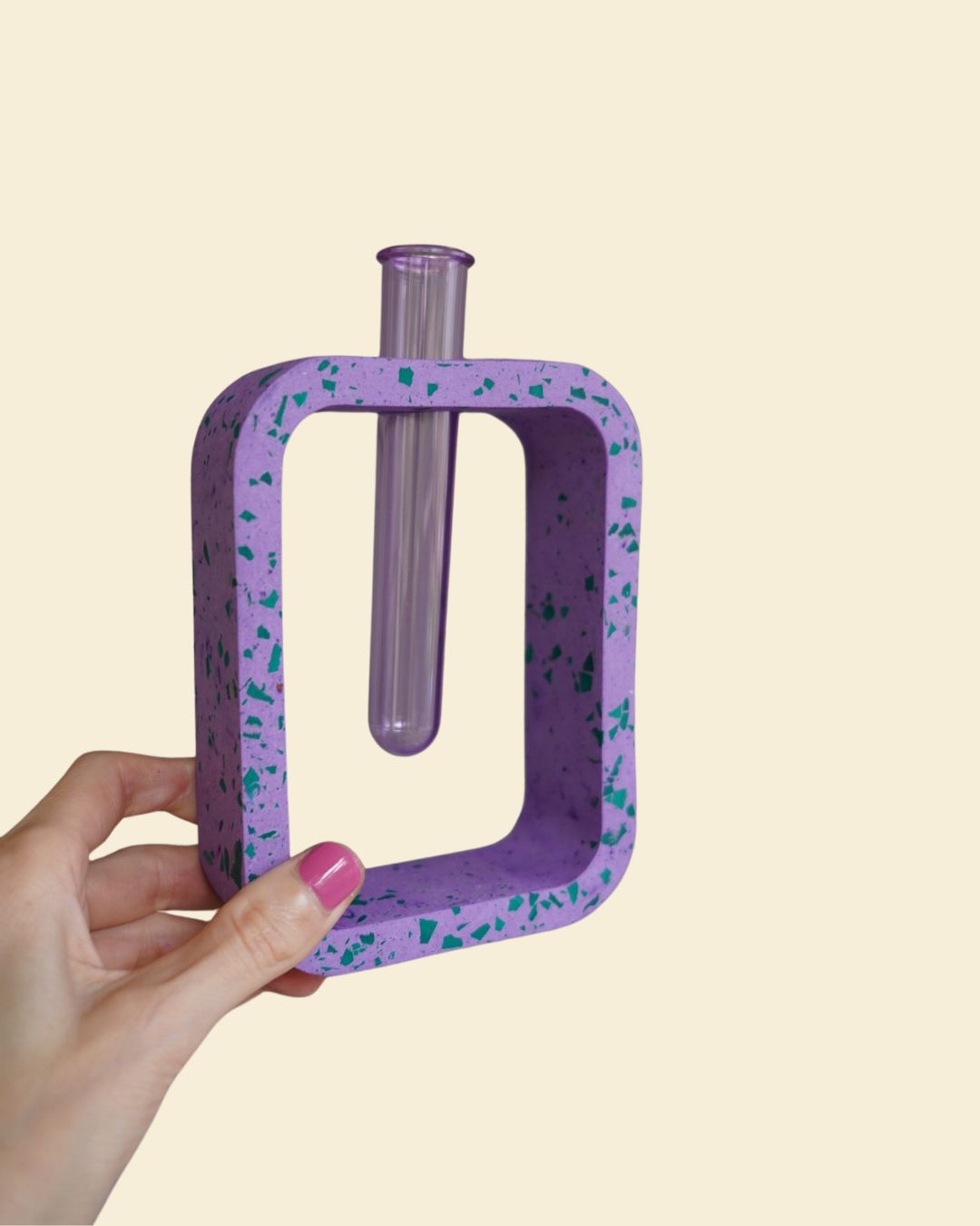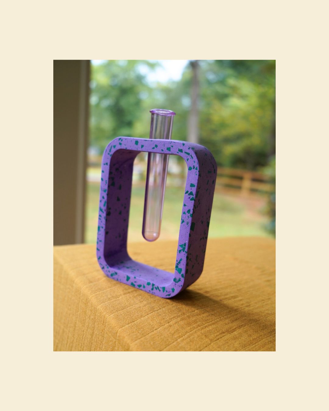 Deep turquoise/green and purple terrazzo propagation holder, comes with purple vile for your cuttings!