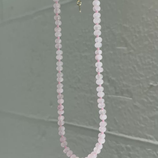 Rose Quartz Rondelle Gemstone Beaded Necklace