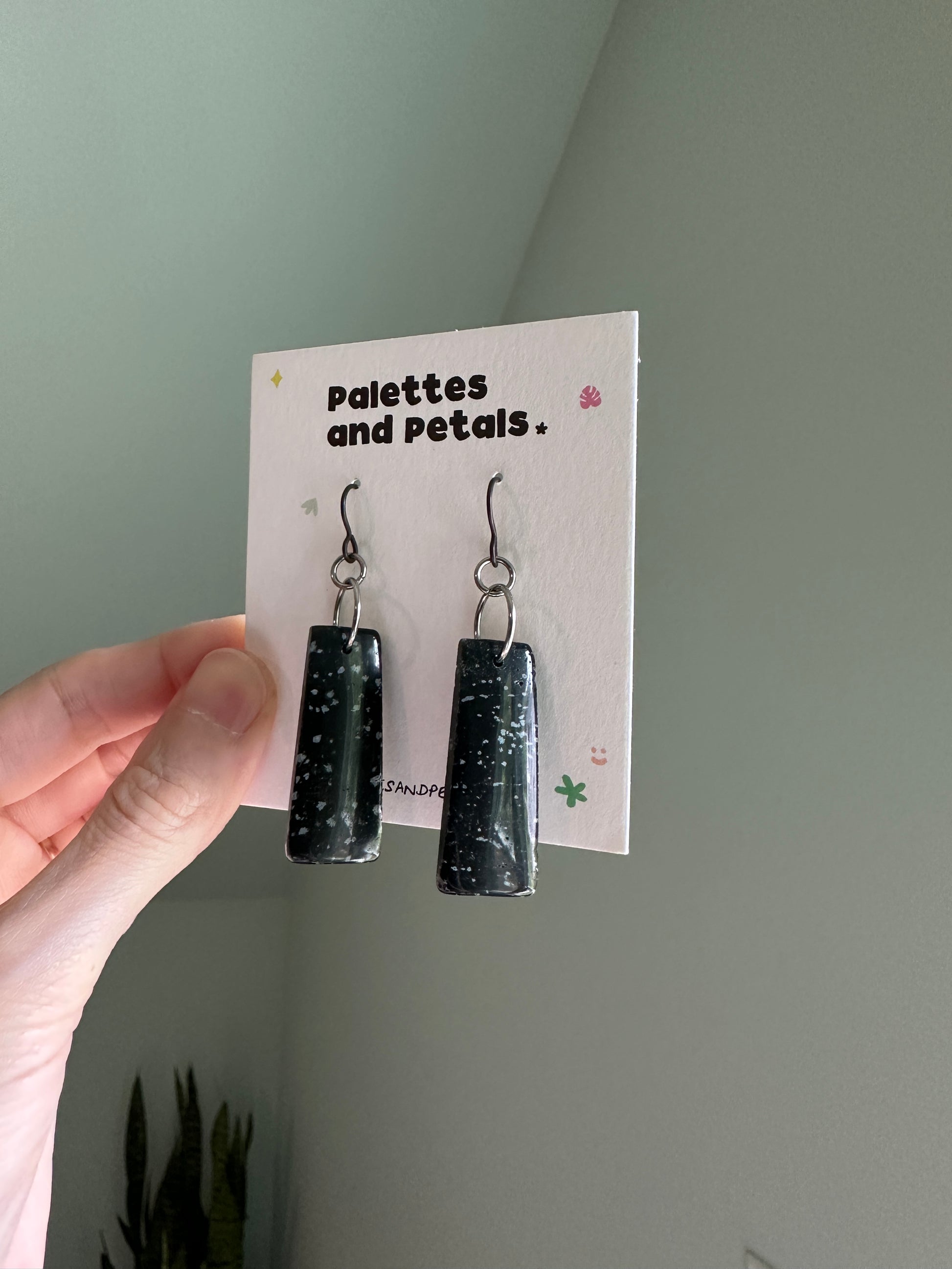 Grounded and elegant, these snowflake obsidian earrings bring a touch of natural magic to your everyday style. Each rectangular stone features a glossy black base flecked with unique, snow-like patterns—no two are ever the same. The sleek drop design is timeless, while the subtle monochrome palette makes them endlessly versatile, pairing beautifully with everything from cozy sweaters to evening dresses.