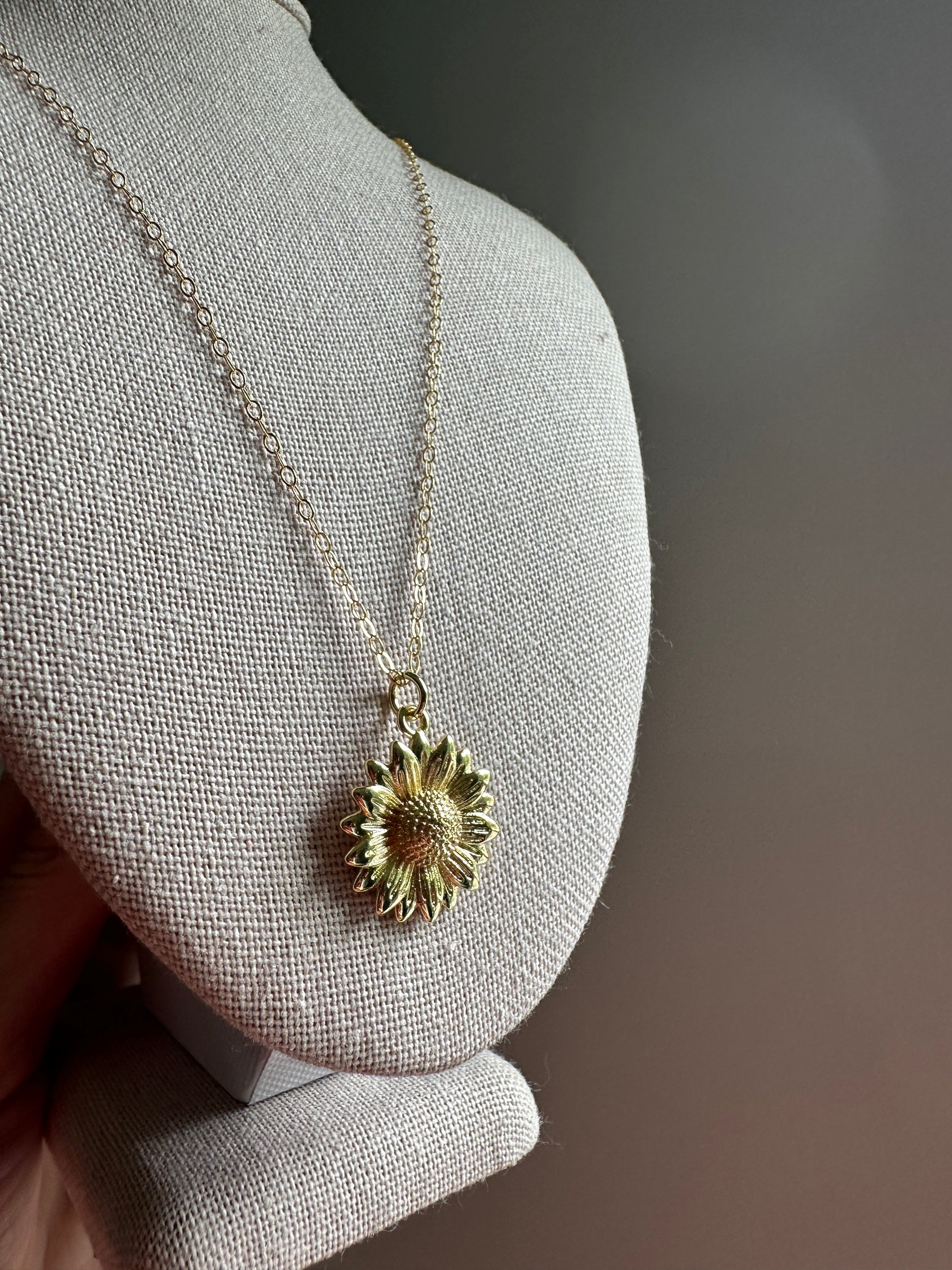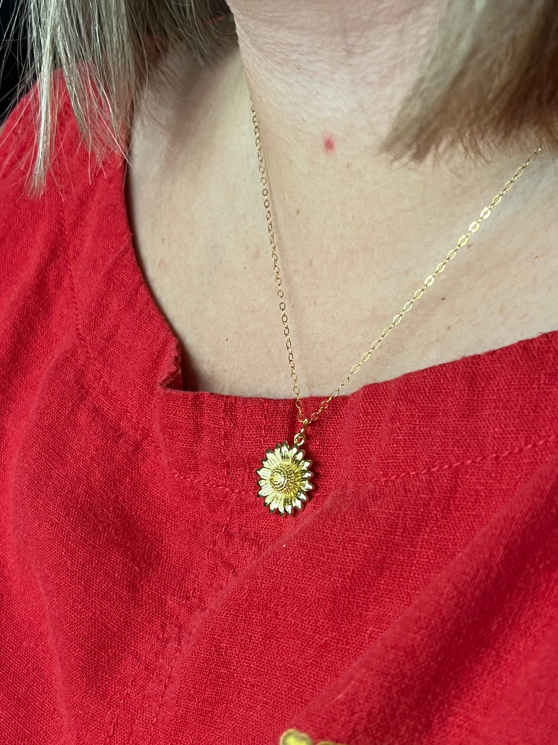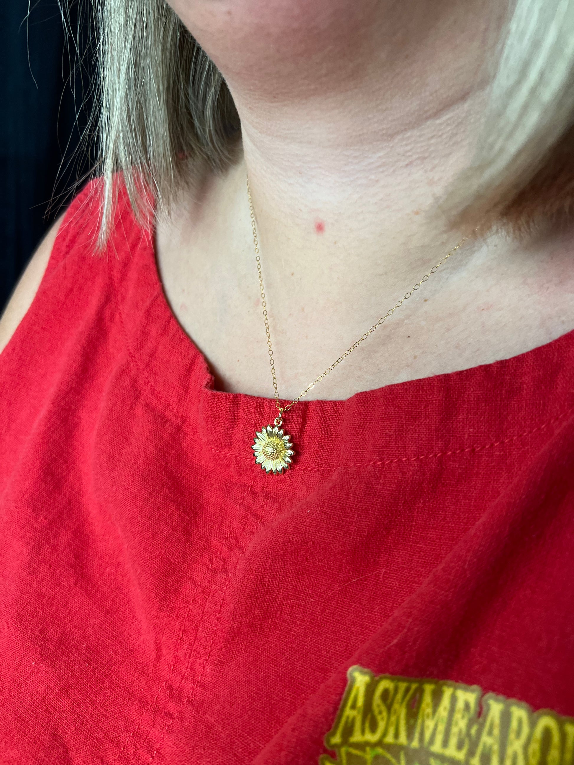 This 18-inch gold-filled necklace features a delicate sunflower pendant (gold plated) in honor of Sunny, the unstoppable force behind SunnyStrong. Diagnosed with ALS while thriving in work, life, and love, Sunny faced her diagnosis with unapologetic courage and deep love for the ALS community. She made it her mission to make sure no one feels alone in this fight.
