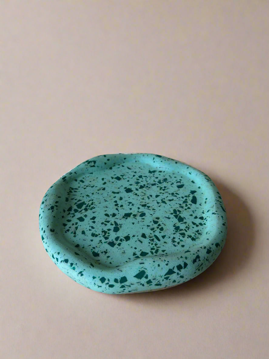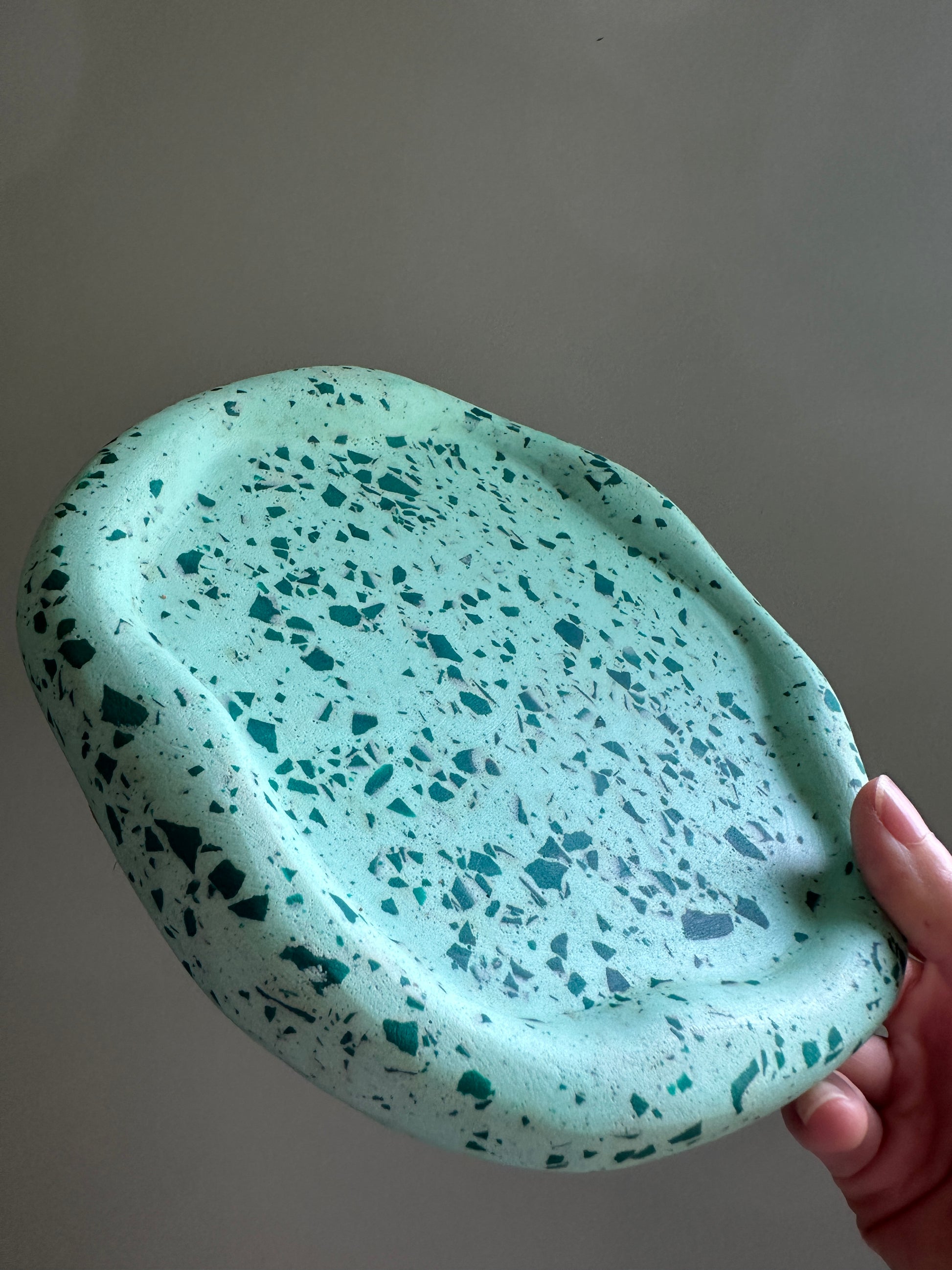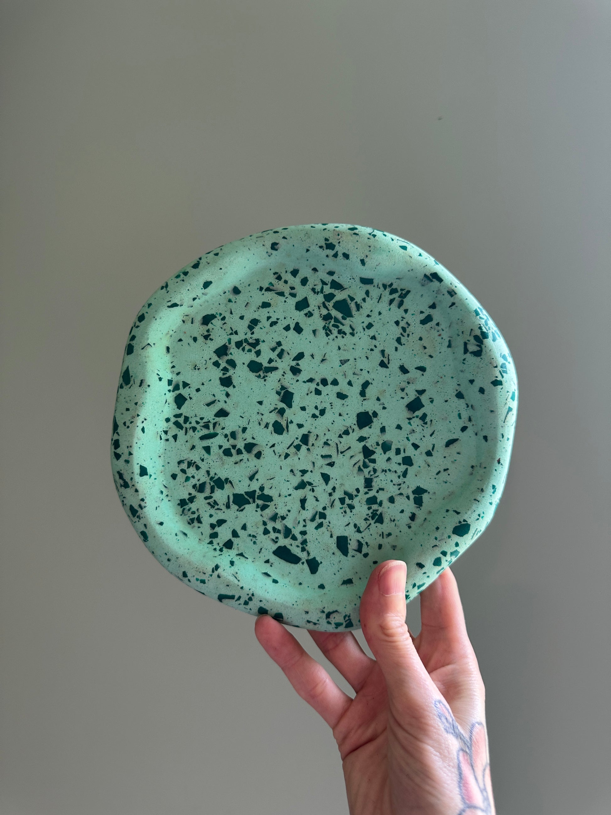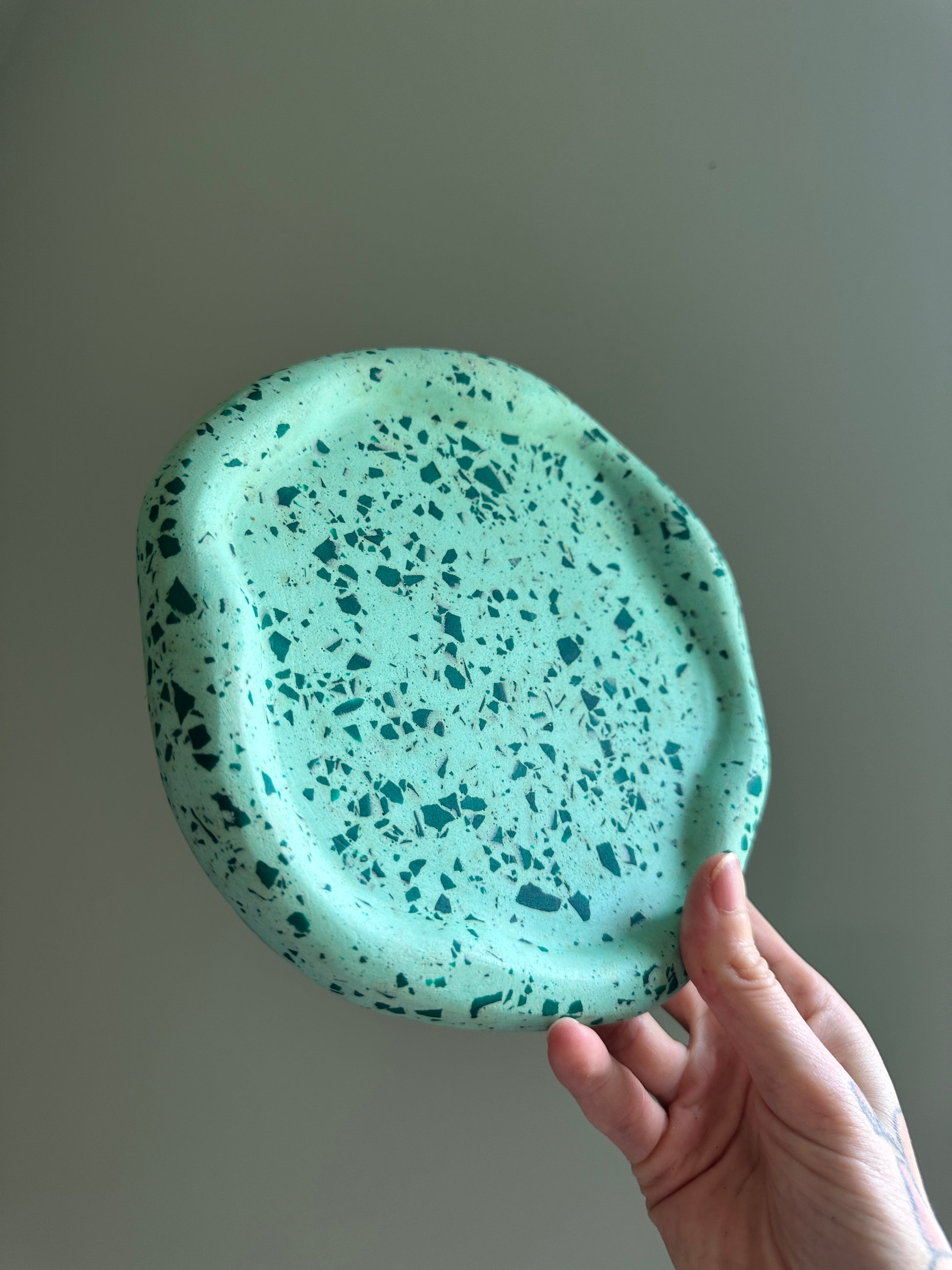 Light teal with darker teal terrazzo chips for a beautiful monochromatic look!
